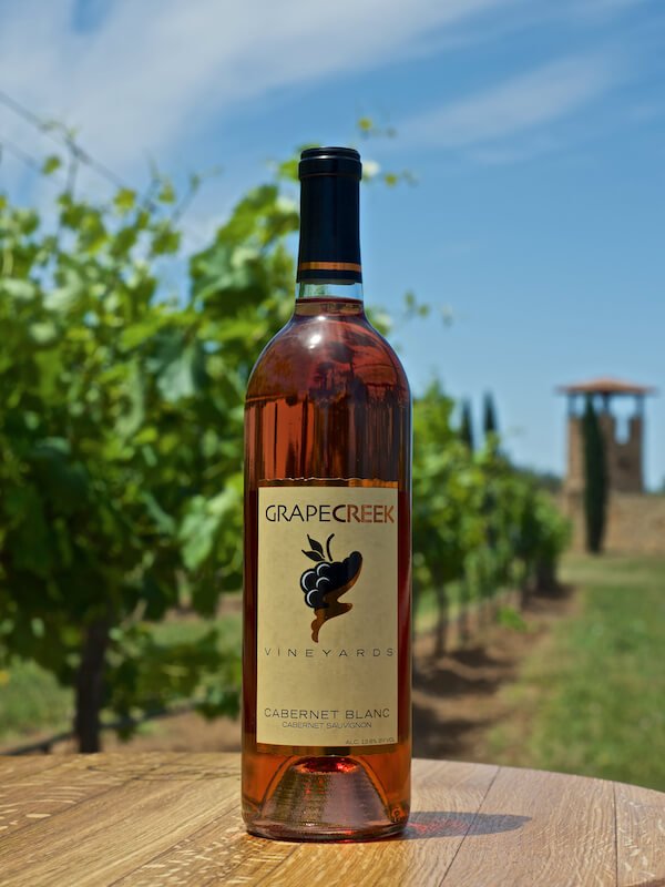 Years ago, Kathy and were speaking with Ned Simes (founder of GCV) about how this wine came to be. In the late ’80’s, White Zin was all the rage and for a couple years Grape Creek followed suit. At the same time, however, there was a glut of young Hill Country Cabernet Grapes. In a brilliant move, Ned was both creative and resourceful in producing this now legendary wine.
